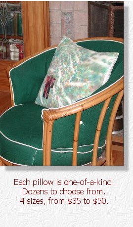 Elegant hand-painted raw silks showcase a variety of Origami Kimono Ornaments Origami Kimono Pillows come complete with pillow form, and for a limited time, shipping is free! ![]() [The Travel Quilts] [The Collage Quilts] [The Scroll Quilts] [Intriguing Home Furnishings] [Origami (Fabric) Kimono Ornaments] [Fabrics: Painted, Dyed, Kimono Silks] [Home] |
