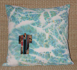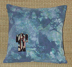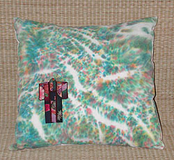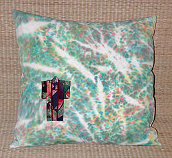Pictured: Hand-Painted Silk Noil front, embellished with an Origami Kimono Ornament. Natural back. Zipper. Hand-Painted Silk: Blue, teal, lime, olive, yellow, purple, orchid. Ornament: Black, brown, burgundy, forest, taupe, rust, ochre, metallic gold. Size: 18 x 18 inches. Shipping: FREE IN USA! One-of-a-Kind, from a Limited Edition Series. |